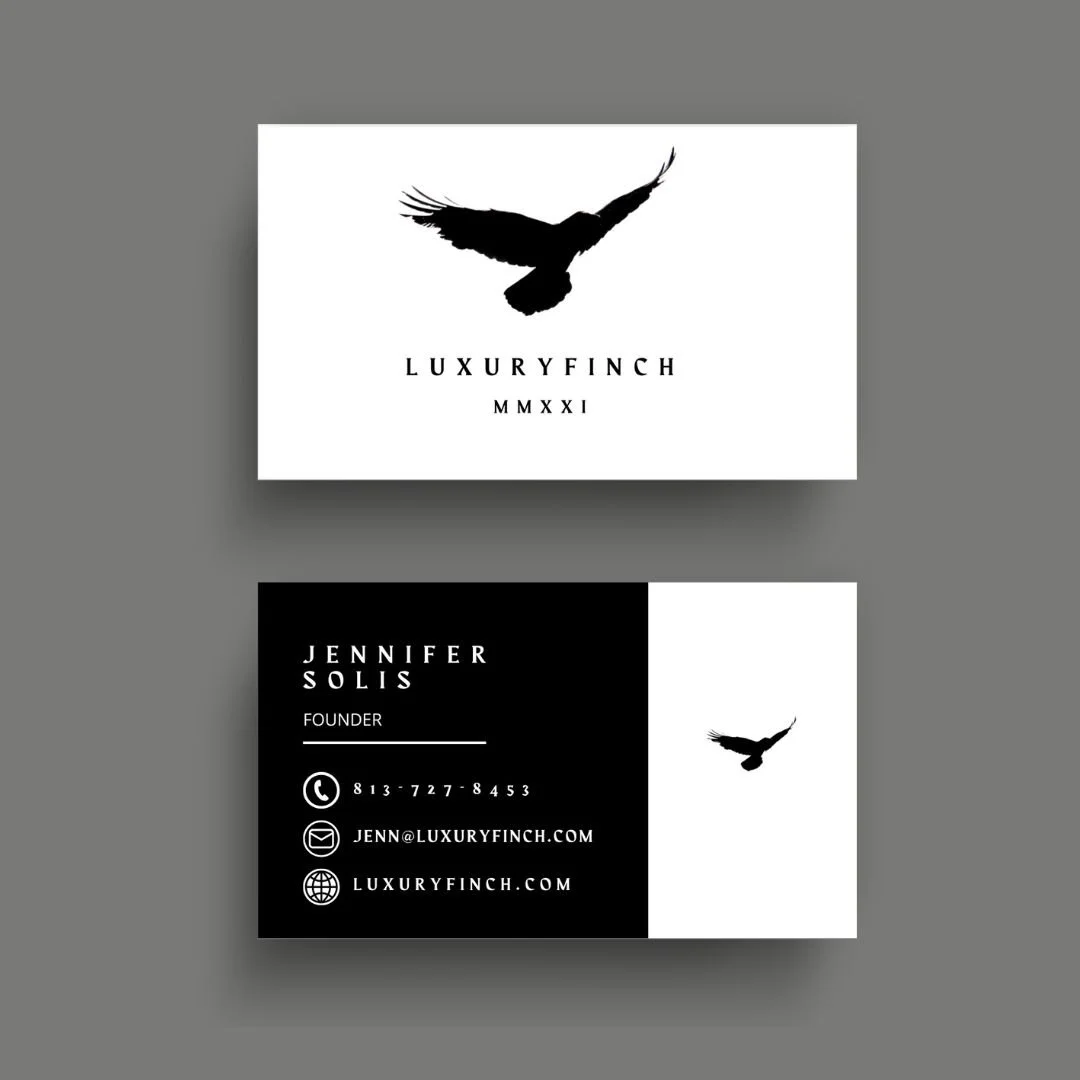 To complement the brand’s upscale image, we designed premium business cards that leave a lasting impression. Featuring luxurious finishes, high-quality materials, and a sophisticated design, these cards reflect the exclusivity of the LuxuryFinch brand.